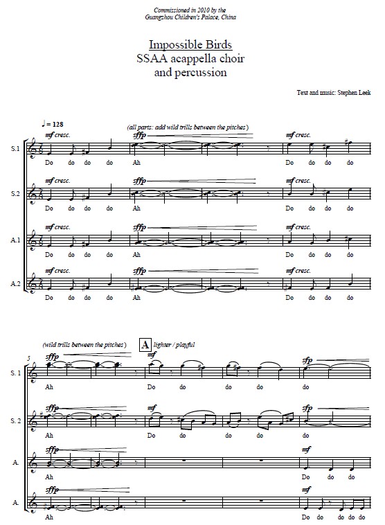 Impossible Bird (SSAA) – Morton Music Exclusive #MM0970 By Stephen Leek Voicing SSAA Description Reviews Previews New Release – One of Stephen Leek’s exclusive digital releases directly through Morton Music – email admin@mortonmusic.com for details. Coming soon More Hush: on the Death of a Bush Church In Flanders Fields