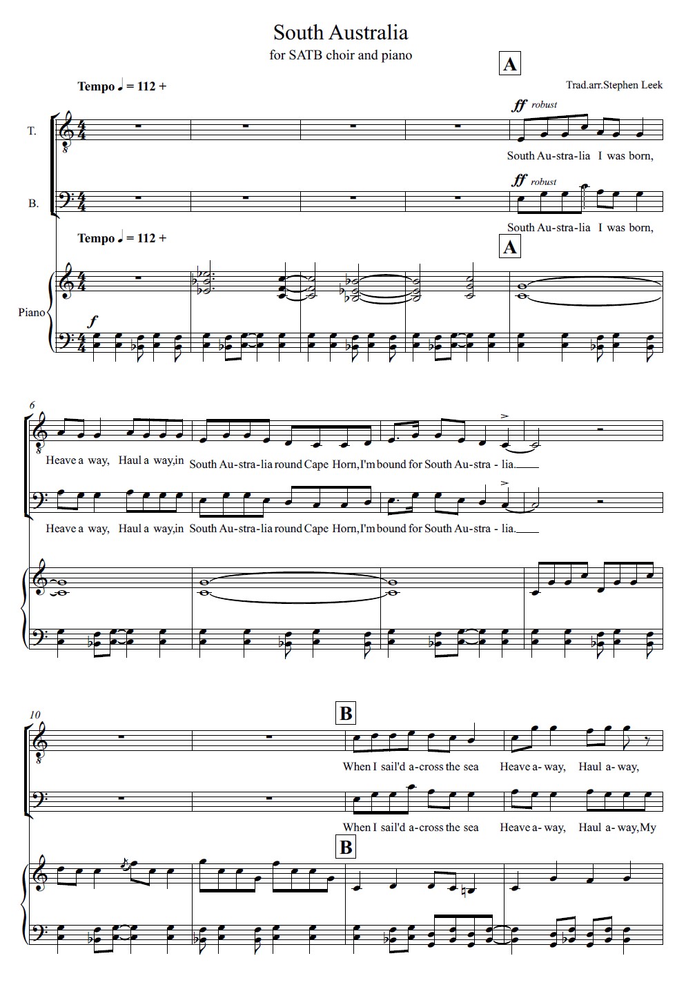 A robust arrangement which includes two versions of an Australian sea shanty. The composer also sanctions a cappella performances.